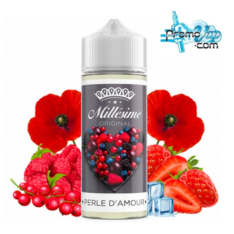 Le Perle D'Amour est proposé en version 100ml boosté en arômes, dans un flacon de 120ml ne contenant pas de nicotine (0mg).